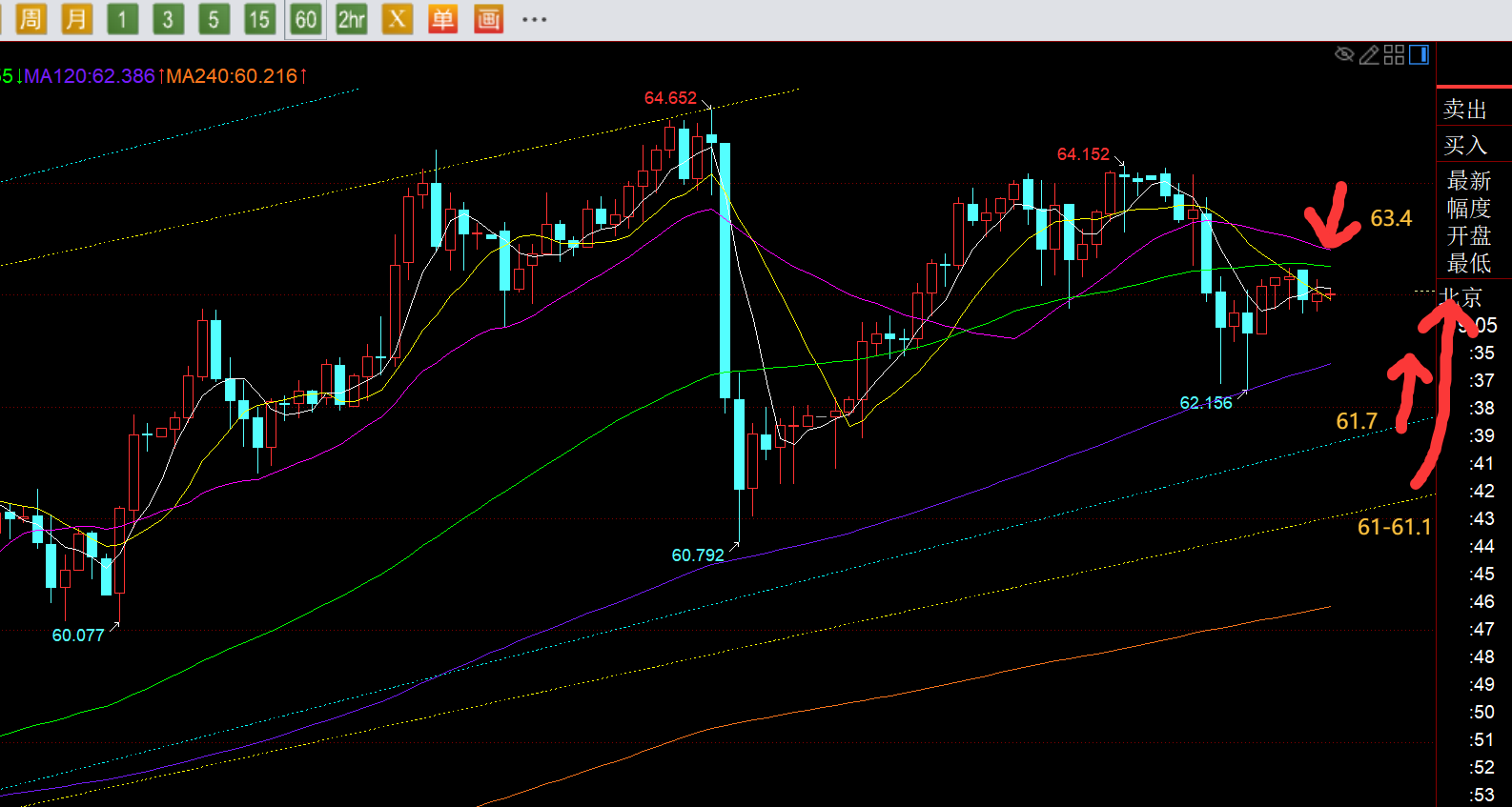 白银方面:针对白银,日线仍处于单边趋势逼空拉升中,则日内继续保持顺势看涨为主,只多不空原则; 小时线中轨阻力63.4,这里未突破站上之前,则等待回踩61.7、61-61.1上逢低企稳; 只要日线仍处于10均线之上,那么就还是逼空状态,同时也意味着黄金很难深度调整;