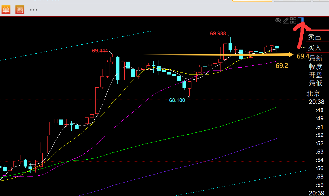 白银方面: 它也是继续维持单边强势看涨,当突破小时线中轨之后,则回踩确认继续看涨,今晚支撑69.2上,顶底支撑69.4也有,上方目标继续看70、71等;风水岭则是69,若失守,则转为震荡修正;