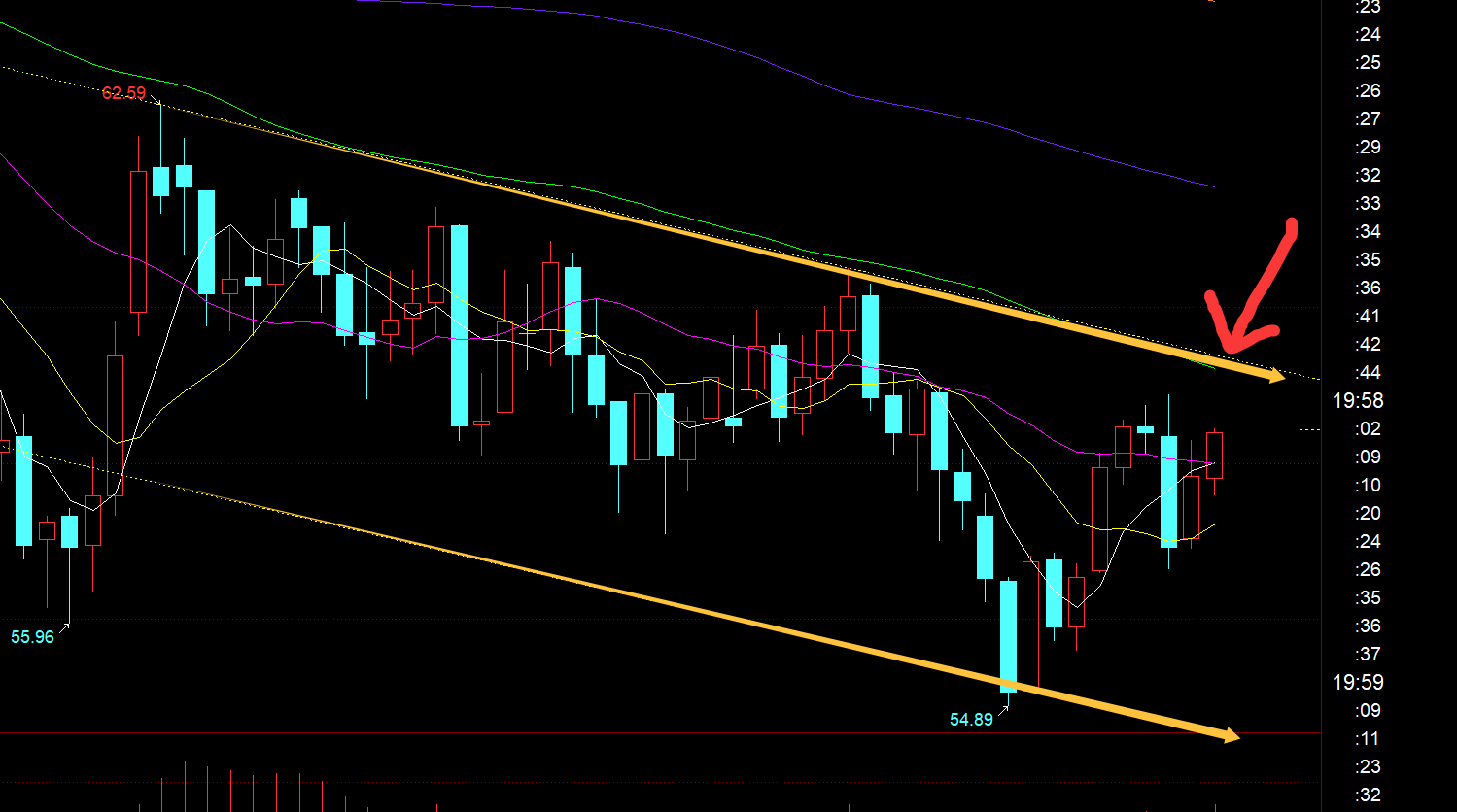 原油方面:昨日晚间反弹的确承压58.3,但下滑力度空间不大;今日有所突破,则留意图中黄色通道上轨59.3一线阻力,也是日线66日承压位,看压制回落;