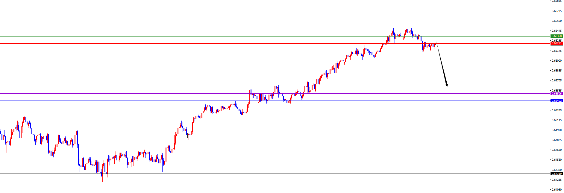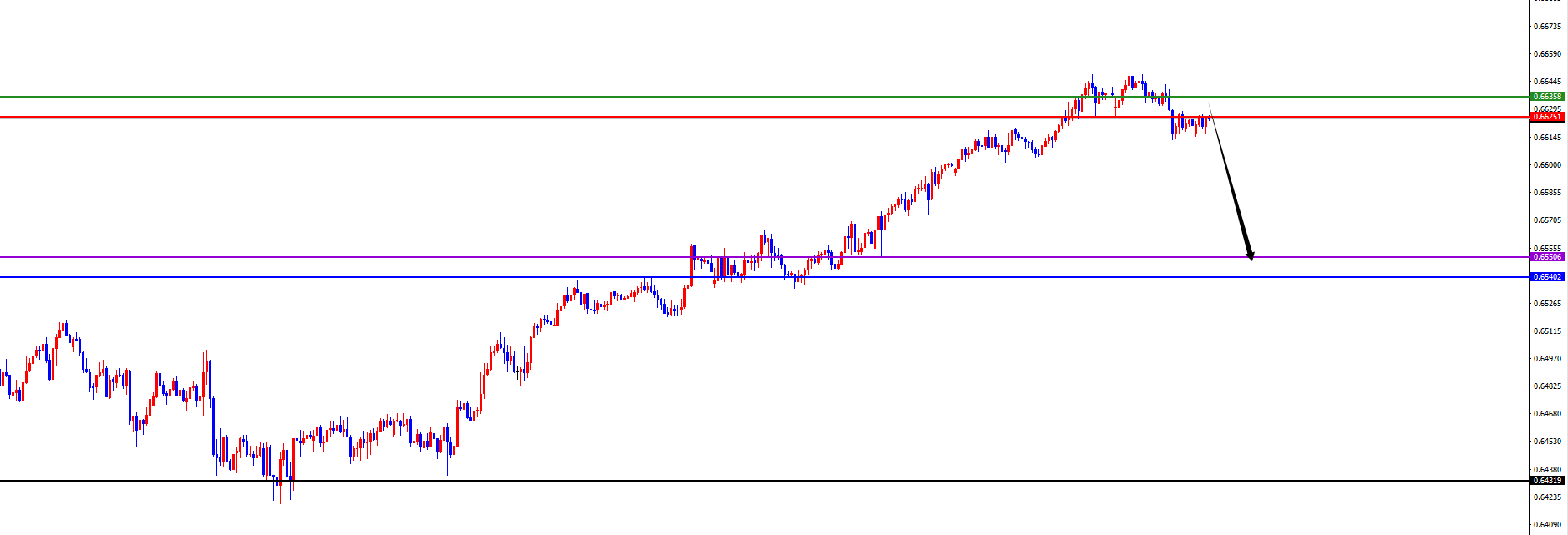 关键分水岭0.6625-35区域,价格没有出现反转之前先维持空