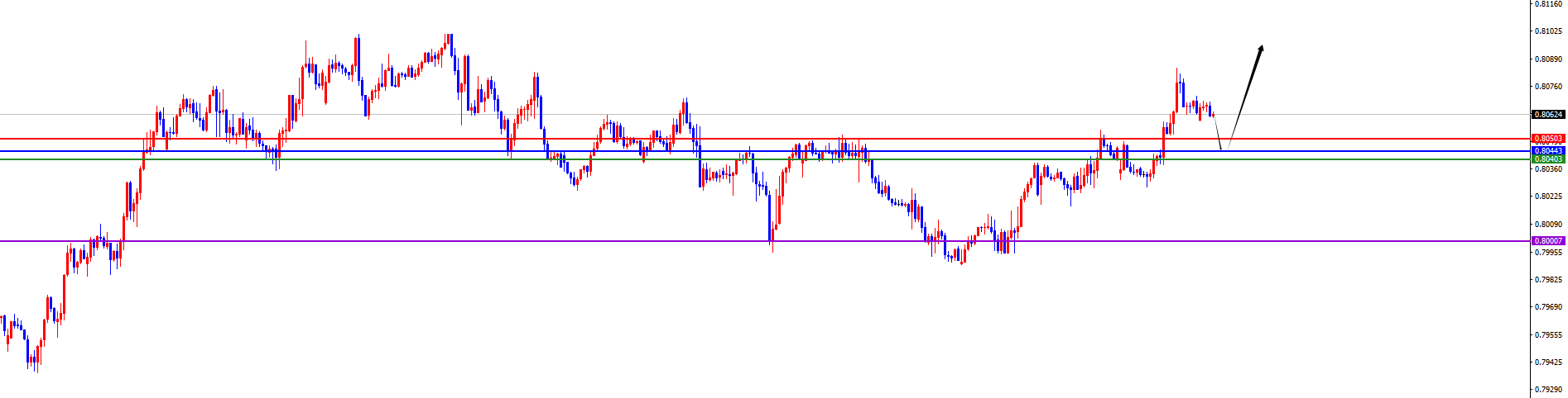 关键分水岭0.8040-50区域,价格没有出现反转之前先维持多