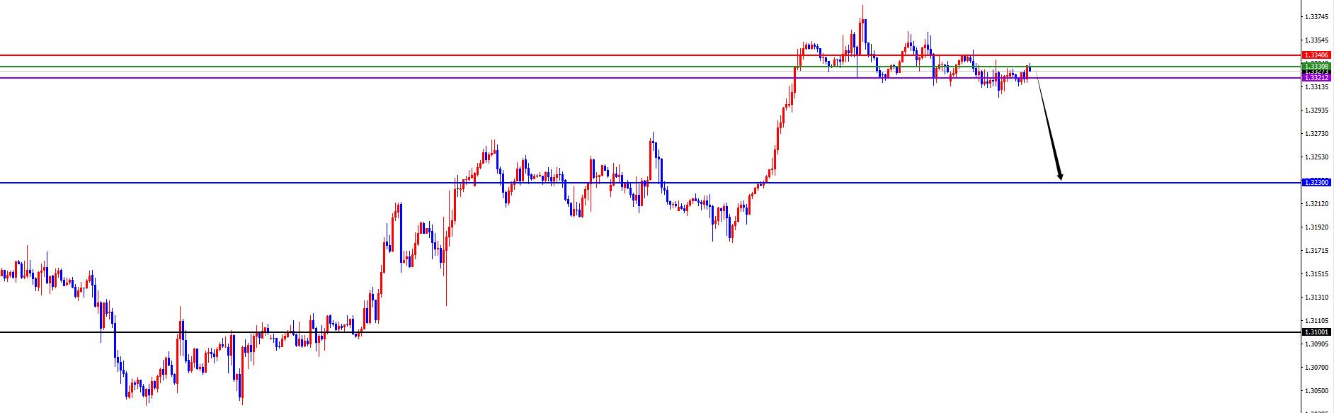 关键分水岭1.3330-40区域,价格没有出现反转之前先维持空