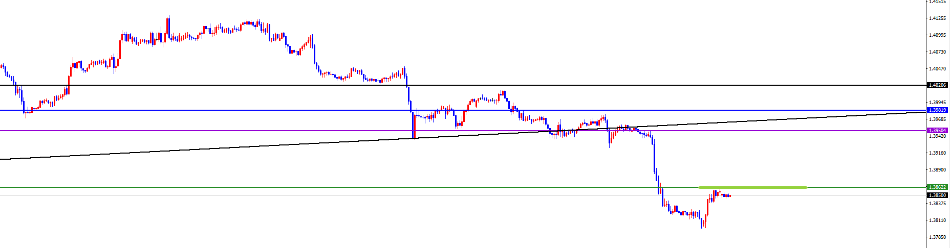 关键分水岭1.3860区域,价格没有出现反转信号之前维持空(同时谨防上破)