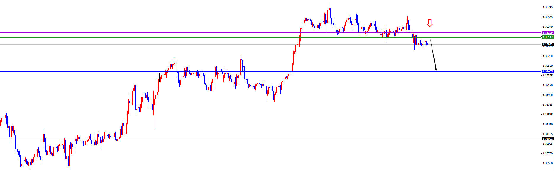 关键分水岭1.3310-20区域,价格没有出现反转之前先维持空