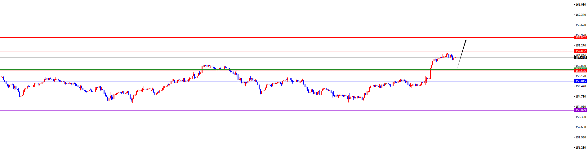 短线分水岭156.50-60区域,价格没有出现反转信号之前维持多