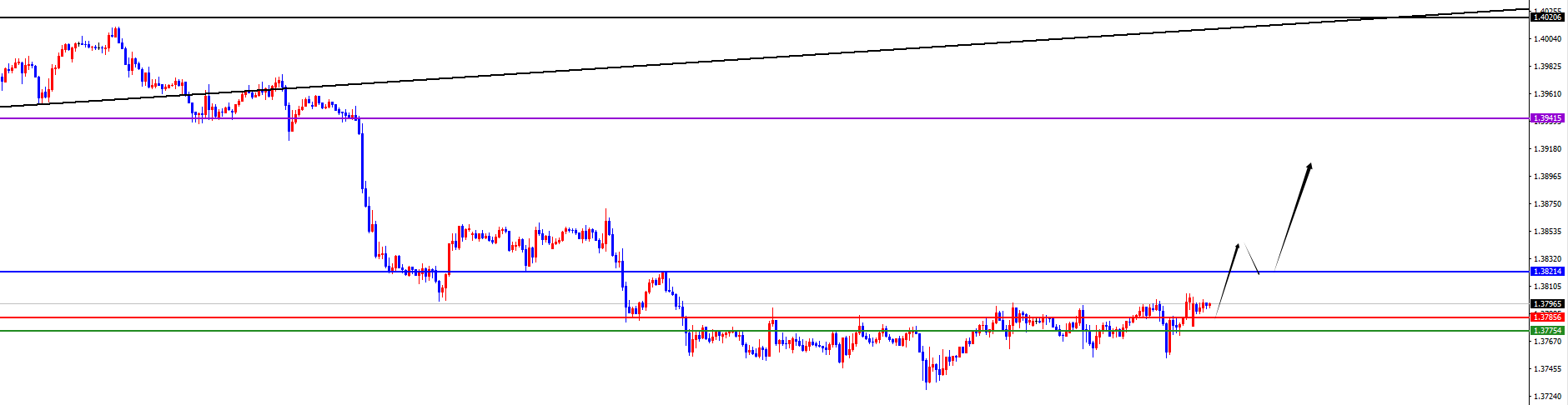 关键分水岭1.3775-855区域,价格没有出现反转信号之前维持多