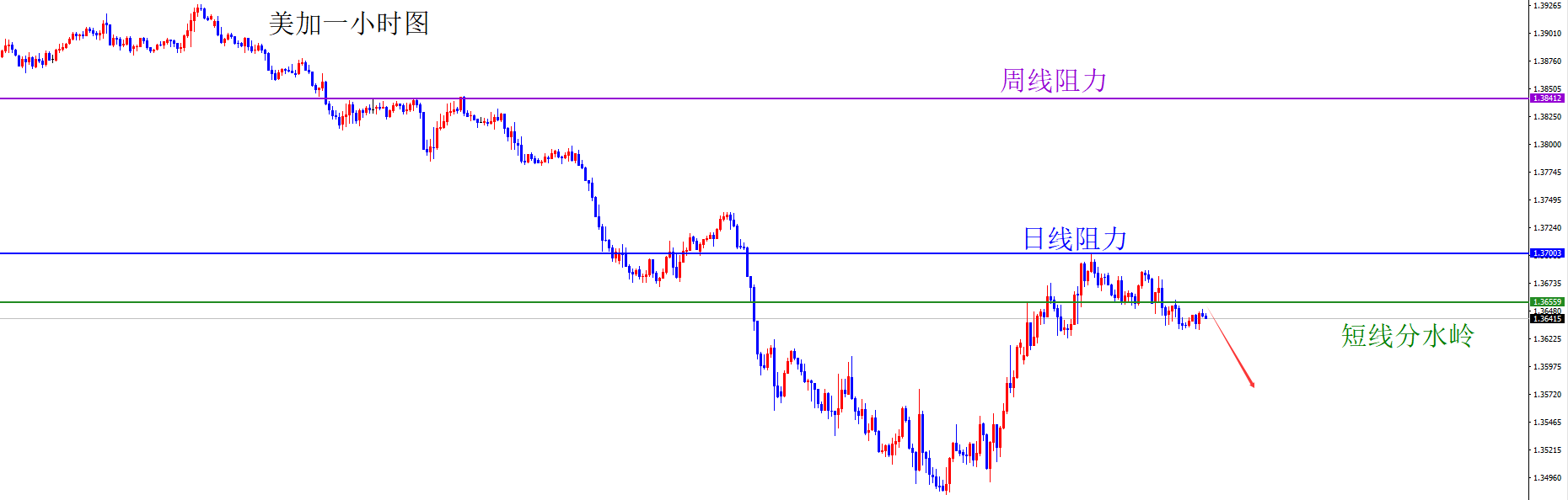 关键分水岭1.3655区域,短线关注1.3655-65区间空