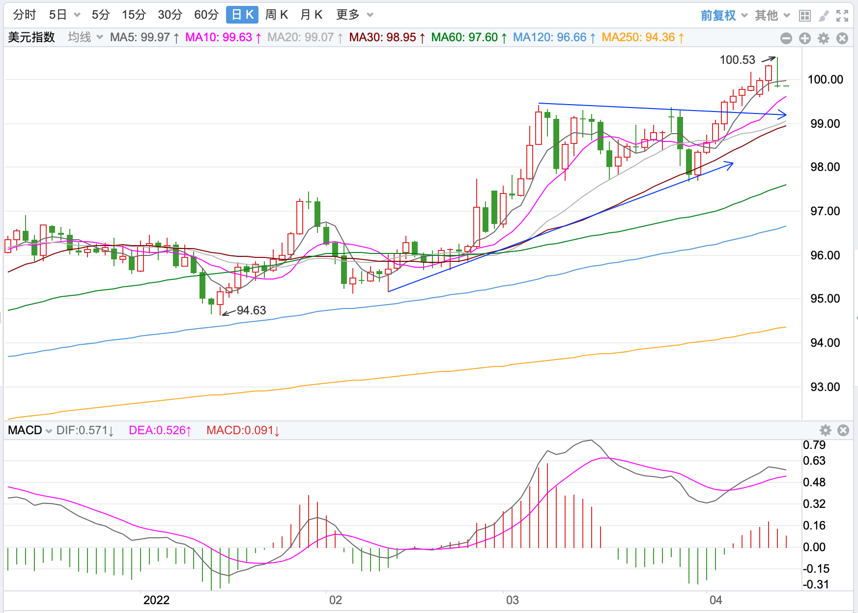 美元指数前期一路上行创出102.99的新高,后一路震荡回落。当前再次受支撑反弹,整体价格在MA200上方运行,短线呈震荡反弹走势。而前期低点对应的价格92.00变成当前行情的强支撑位,也是后市的多空分水岭,如果此支撑有效,后市会继续反弹走势。日内阻力在92.50、92.80,支撑位:92.00、91.60。