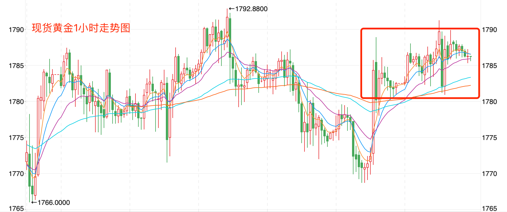 贵金属市场,黄金周一继续反弹走势,最高触及1791.26美元/盎司附近,收盘至1786.5262点附近,涨幅为0.23%(国内期货黄金收在368.84元/克,涨幅为0.27%)。白银小幅反弹走势,收盘在22.32美元/盎司,涨幅为0.52%(国内期货白银收盘在4741元/千克,涨幅为1.41%);整体看黄金白银偏弱继续筑底的趋势。