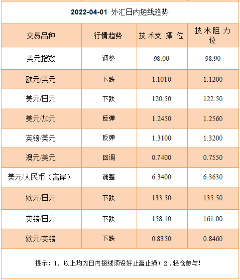 对外汇市场构成影响的因素有以下几个方面;1,美国经济数据方面,周四晚间公布的美国2月PCE物价指数年率为6.4%,持平市场预期但高于前值;美国2月核心PCE物价指数年率为5.4%,低于市场预期的5.5%但高于前值5.2%。美国截止3月25日当周初请失业金人数为20.2%,高于市场预期的19.6%和前值18.7%。美国3月芝加哥PMI为62.9%,大幅高于市场预期的57%和前值56.3%。2,欧洲公布的欧元区2月失业率为1.1%,大幅低于市场预期的6.7%和前值6.8%。德国3月季调后失业率为5%,持平市场预期和前值,德国3月季调后失业人数总变动为-1.8万人,优于市场预期的-2万人和前值-3.3万人。整体数据对欧元有一定的支持。3,随着周四披露的美国2月PCE核心物价指数虽然略逊预期,但同比增长5.4%也是1983年以来的新高。对于这个数据华尔街已开始形成一致预期,即美联储将在后面的议息会议上开展一次甚至多次50基点的加息。对美元指数的支持颇强。4,北约秘书长斯腾伯格表示,乌克兰境内的俄罗斯军队不是在撤退,而是在重新集结,重新补给并加强其在顿巴斯地区的攻势。”乌克兰总统泽连斯基称,俄罗斯正在集结力量,准备对顿巴斯发动新的打击,并要求乌克兰将该地区拱手让给亲莫斯科的分裂分子。据英媒体泰晤士报称英国担心美国、法国和德国将推动乌克兰早日解决争端,让乌克兰在与俄罗斯和平谈判中做出重大让步。俄乌和平谈判将于周五恢复。战火始终挥之不去,对外汇市场避险货币美元形成较强的支持。5,美国总统拜登周四批准释放1.8亿桶石油储备,这是美国有史以来规模最大的紧急石油储备释放计划,并要求石油公司开采更多石油,以降低俄罗斯与乌克兰战争期间飙升的汽油价格。拜登释放的1.8亿桶原油储备相当于全球两天的需求量,这是华盛顿在过去六个月里第三次动用战略石油储备。