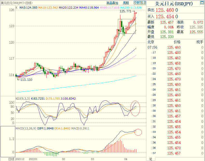 美元指数前期持续上涨在2020年3月份创出102.99点的高位后一路震荡回落走低,2021年1月份触及89.206点的低位后,开始向上持续震荡走高;2021年11月份指数突破MA60周线后保持其上运行,此后打开了中长期上升的空间。当前指数站稳中期走势的支持上运行,当前日内短线行情有继续反弹向上的趋势。