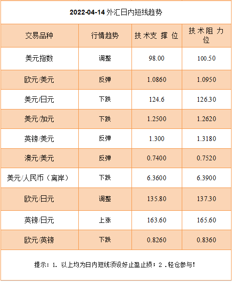 对外汇市场构成影响的因素有以下几个方面;1,美国经济数据方面,周三美国公布的3月PPI年率为11.2%,高于市场预期的10.6%和前值的10.0%;美国3月核心PPI年率为9.2%,低于市场预期的8.4%持平前值。美国的PPI数据创下2012年8月以来的新高。2,日本央行行长黑田东彦下午表示,要维持目前强有力的货币宽松政策以支持经济复苏,黑田的发言导致美元/日元汇价出现最新一轮突然上涨的关键因素,突破了2015年的高点。日本财务大臣铃木俊一则表示,外汇的突然波动是有问题的,外汇稳定至关重要,不过不会对汇率平发表评论。3,美联储理事沃勒表示,通货膨胀数据很高,但并不令人意外,预计通胀率已达峰值,之后将开始回落,同时,他再次重申支持下个月加息50个基点。包括主席鲍威尔、“鹰派之王”布拉德、克利夫兰联储主席梅斯特、纽约联储主席威廉姆斯、美联储理事Waller、包括最近旧金山联储行长 Mary Daly在内的多位联储官员曾表态,如有必要控制通胀,他们愿在5月FOMC会议上提高加息幅度至50基点。市场普遍预计,美联储会在5月利率会议上加息50个基点。4,新西兰央行周三也宣布加息50个基点,将官方现金利率升至1.5%,一度带动澳元的反弹。5,加拿大央行宣布加息50个基点,将基准利率上升至1%,符合市场预期,并创下该国央行22年来最大的加息幅度。加拿大也由此成为了自新冠疫情爆发以来,七国集团(G7)中首个大幅加息的国家。加拿大央行同时宣布,将从4月25日开始量化紧缩,缩减资产负债表规模,以配合加息政策,进一步疏解通胀压力。加拿大央行行长表示,加拿大经济需要提高利率,以缓和国内需求,并将通胀维持在2%的水平。此前公布的数据显示,加拿大2月通胀率达到了5.7%,处于30年来最高的水平。