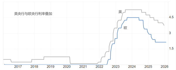 ATFX:英央行与欧央行利率决议,大概率不降息 ATFX汇评:欧央行利率决议的时间较为固定,每隔六周后的星期四。英国央行利率决议同样是相隔六周,只不过不固定星期几。 2026年首次利率决议,英央行也选在星期四公布结果。这导致了欧央行和英央行扎堆决议的局面。实际上,欧元区和英国都属于欧洲,地理位置相近,天然存在