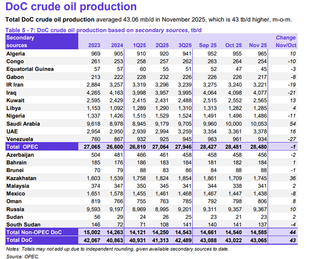 ATFX汇评:欧佩克、IA、IA扎堆公布月报,WTI跌破57美元 ATFX汇评:IA短期能源展望中提到:石油库存将继续上升,对价格形成压力;预计原油价格在未来几个月将继续下跌;预计布伦特原油在2026年的价格在55美元附近(2025年在69美元附近),截至今日欧盘,布伦特原油的最新价为61美元。 国际能源信息署IA公布月度能源展望