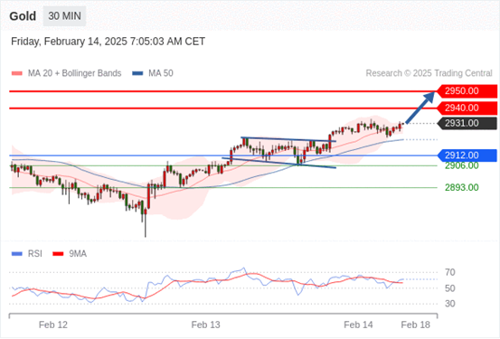 查看交易中心全球研究部门今日的市场观点。从受欢迎的交易产品中探索新的交易方法与机会。 欧元/美元黄金现货英镑/美元欧元/日元欧元/英镑美元/瑞郎德国DAX指数期货(urx)布伦特原油(IC)英国富时100指数期货 黄金现货当日内:在2908.00之上,看涨。 转折点: 2908.00 交易策略: 在2908.00之上,看涨,目标价位为2940.