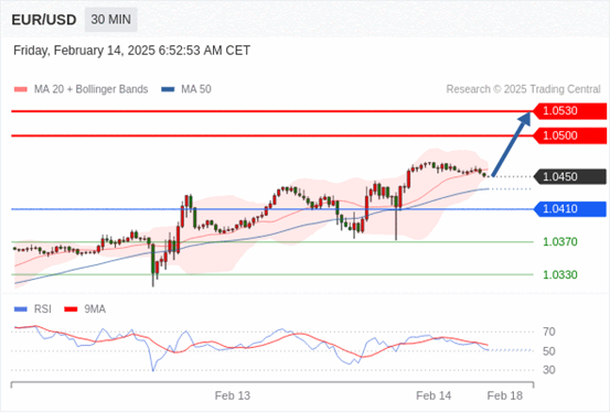 在 1.0410 之上,看涨,目标价位为 1.0500 ,然后为 1.0530 。