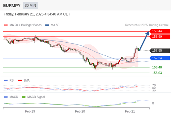 如跌破 157.24 ,EUR/JPY 目标方向定在 156.48 和 156.03 。