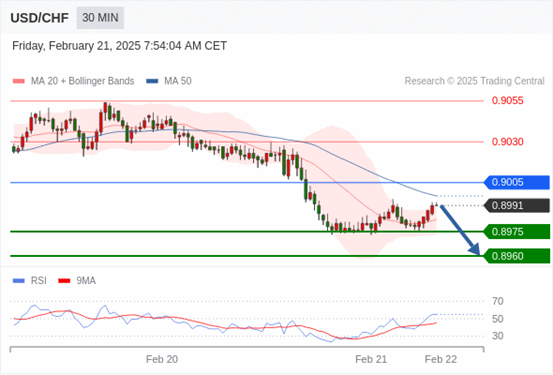 在 0.9005 之下,看跌,目标价位为 0.8975 ,然后为 0.8960 。