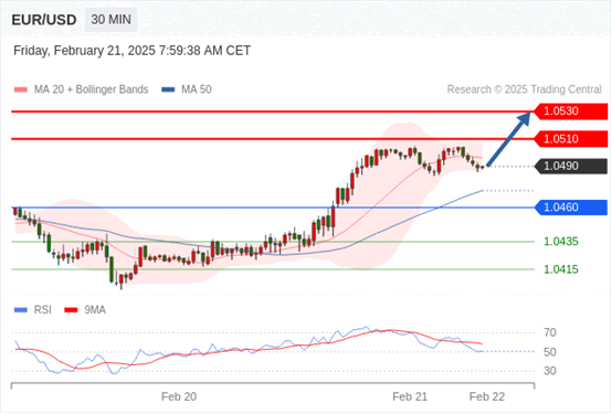 在 1.0460 之上,看涨,目标价位为 1.0510 ,然后为 1.0530 。