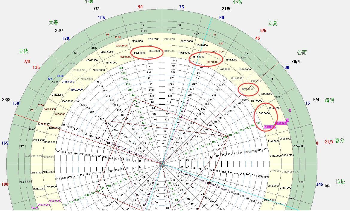 周四:经过周二周三的布局并且顺利止盈,那么当前的行情已经变的越来越明朗。现在行情还是属于上升期,只不过还是我昨天说的,多空转换中的震荡期。空也空的差不多,价格已经触及1782,那么按照江恩星象上的提示,后面要开始反转,这一轮反抽的延续性必然是足够的。也就是说这一次反抽价格至少要去到1830上方,对于现在这个1787位置来说,上升空间还是有,正常情况下至少也可以看到1810-25区域,我说的正常情况是指不加速状态,不过按照我们的预期来说不会有加速了,除非基本面出现大的刺激,上升的主要时间要到27号之后,这一波高位震荡即将结束,这一点会在本周四周五延续上升就能够体现出来,参照前面每次回踩都在很短的时间重新上升,并且上升都是破高式的,上周明显震荡的时间拉长,本周破高回踩,意味着现在就是逃空的局势。