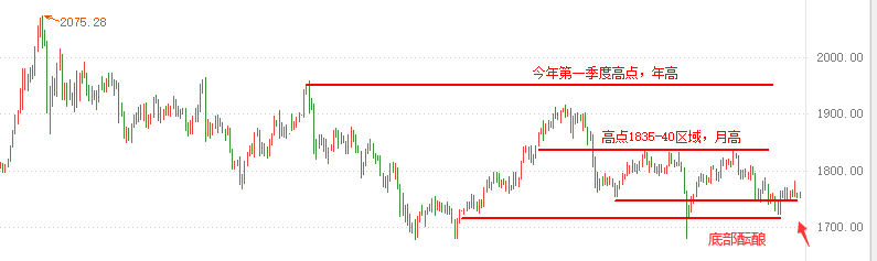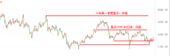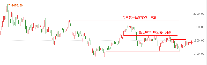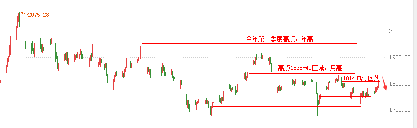 不管过去你交易做的如何,不必太在意,若是顺利,叫做精彩;若是糟糕,叫做过程,交易没有折返的通道,只有找到自己的交易系统才会改变,但这也需要成长才能改变。 ——9.16行情解析—— 周四:行情还是没有太大变化,只是从1800上方回落,但是黄金价格还没穿。所以形成一个很尴尬的阴阳循环局面,震荡的时间确实有些过