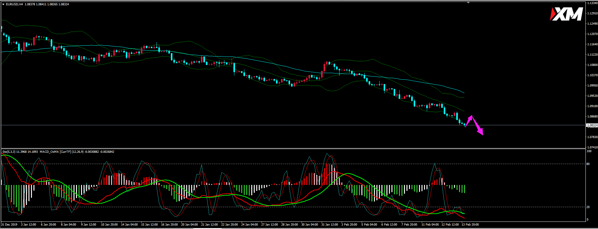 4H昨日触及MA10一线空头延续,目前短期均线发散向下,MACD零轴下方死叉运行,短线有维持震荡下行之势。