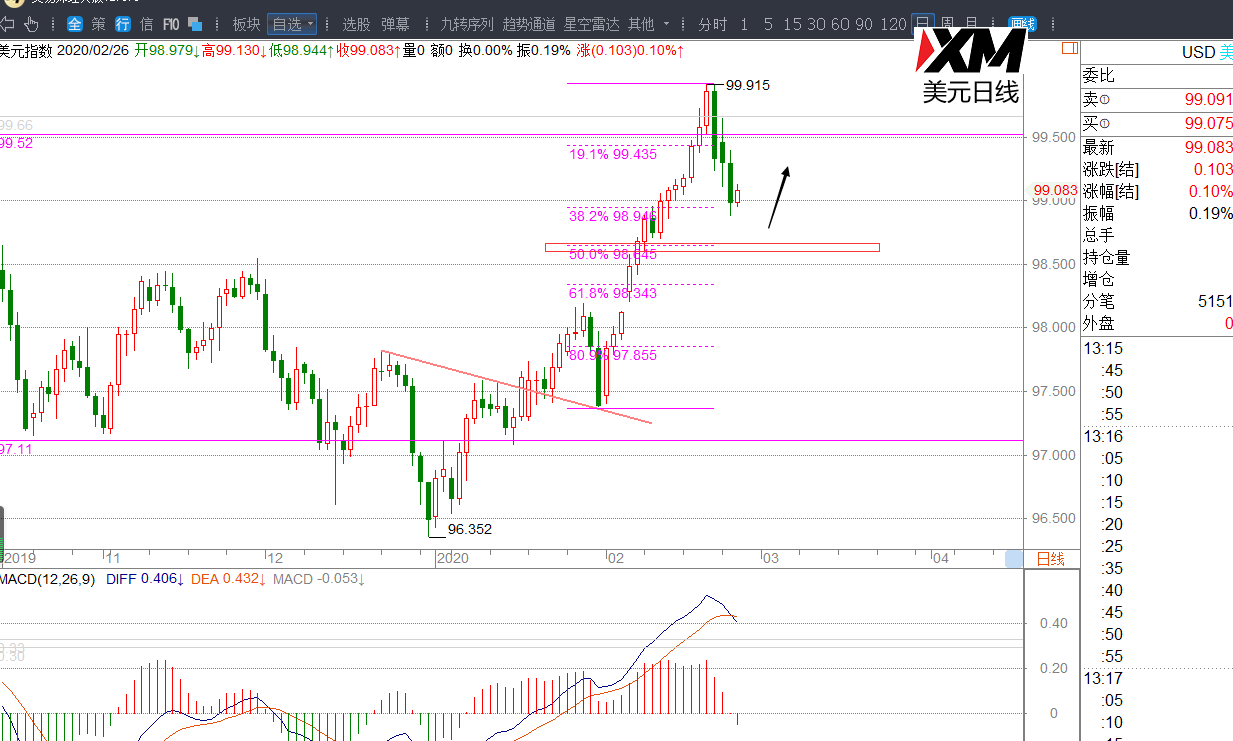 美元先跌关注98.72/98.65一带支撑多,止损98.40,目标99.15-99.25