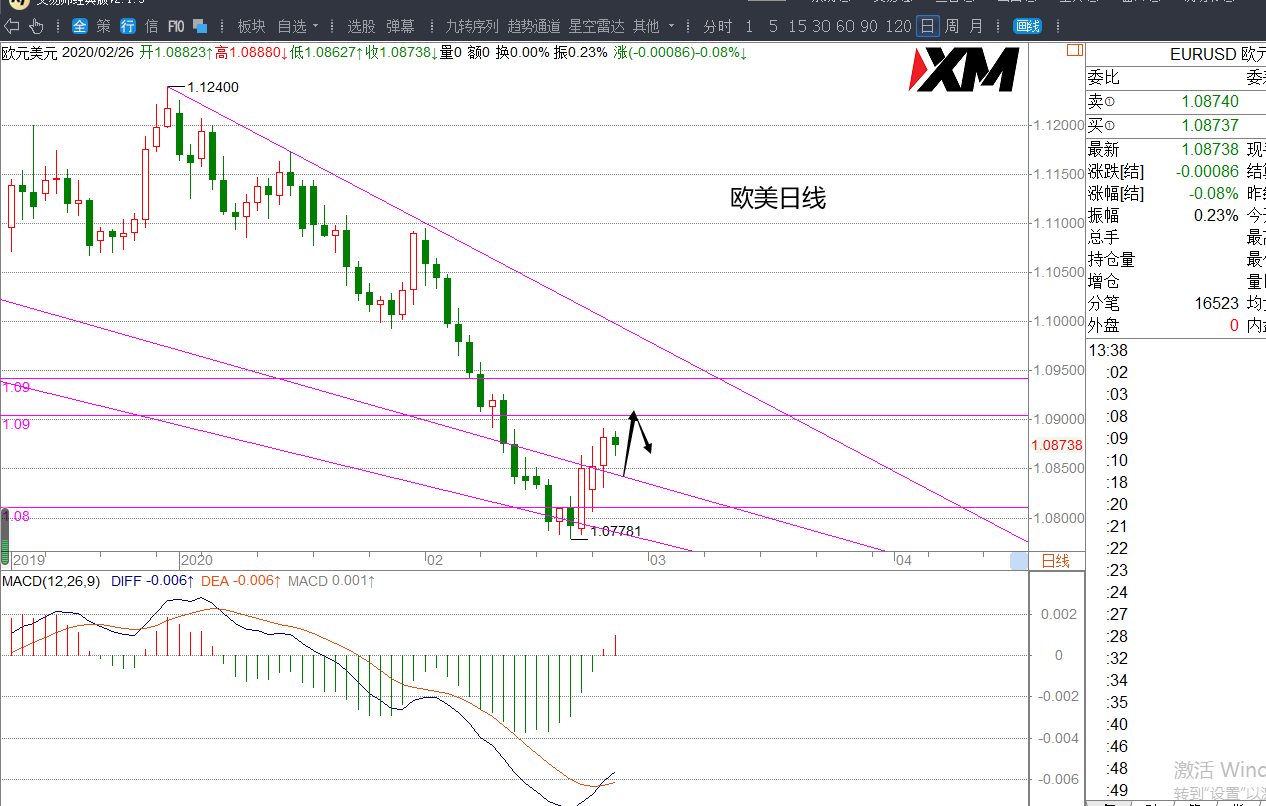 (2)欧美1.0940压制下有试空机会,欧美先涨关注1.0905/1.0920一带压制试空机会,止损1.0950,目标1.0865/1.0850