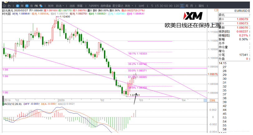(2)欧美先涨,关注1.0930/1.0940一带试空,止损1.0975,目标1.0880/1.0870;欧美日线下破1.0855就开始继续偏空运行。