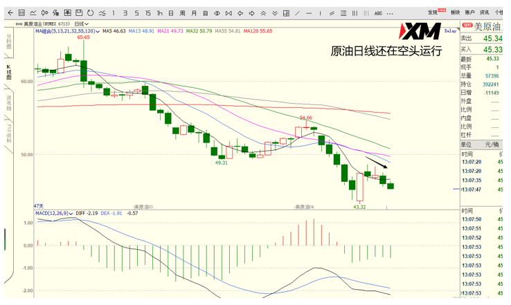 支撑位:45.07-44.70-44.30 -43.30