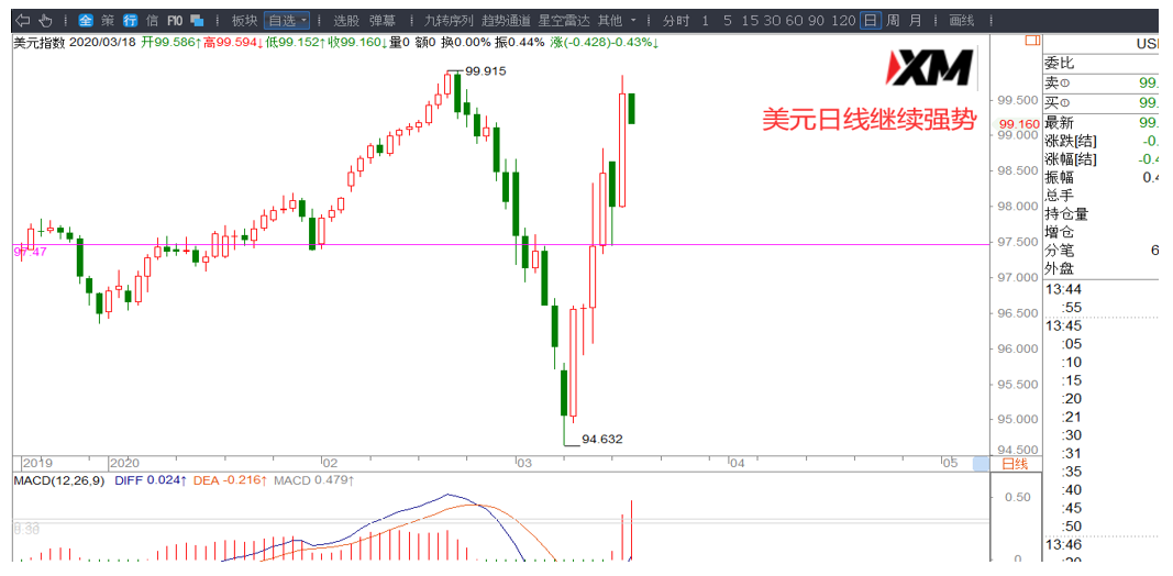 美元98.70上方继续多头运行,日内回踩98.80/98.70一带低多交易,今日美元面临99.91前高压制,如果能突破还会继续走强。不过RSI指标高位钝化,小心市场有变。