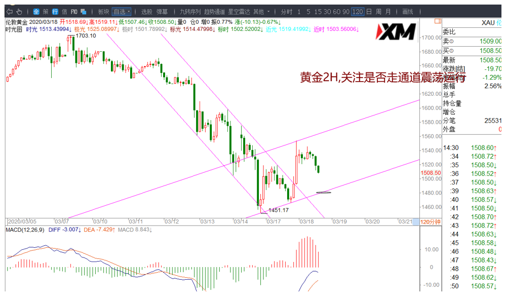 (1)黄金先跌关注1480/1478一带的日内通道支撑,不跌破,有轻仓试多机会,目标1490-1502-1515