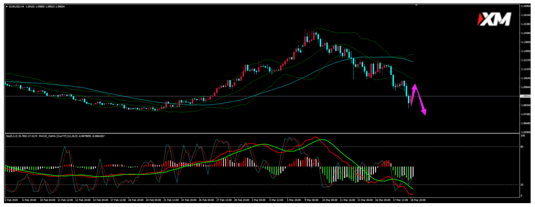 1H昨日反弹至MA20上方空头增强,今日上方关注1.0980-90一线阻力,短线震荡偏空,目标关注日线前支撑,目标关注日线前支撑,下破后方可延续。