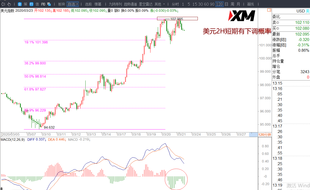 美元101.07没跌破前,日线多头的格局还不会被打破,回踩101.40/101.20一带支撑依然有低多机会。目前日线在102.99高点位置小幅下调。