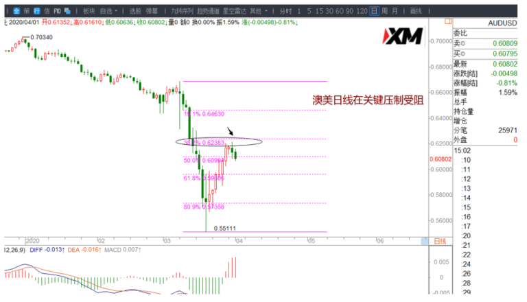 澳美昨日收螺旋阴K,今天小幅走低,在前方关键压制下受阻,日内有反弹试空机会。