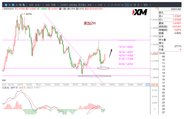 美加在1.4060上方,日内震荡偏多,再次回踩1.4080一带不破1.4060,可以短多,目标1.4140-1.4160,前方1.4190/1.4220有强压制。