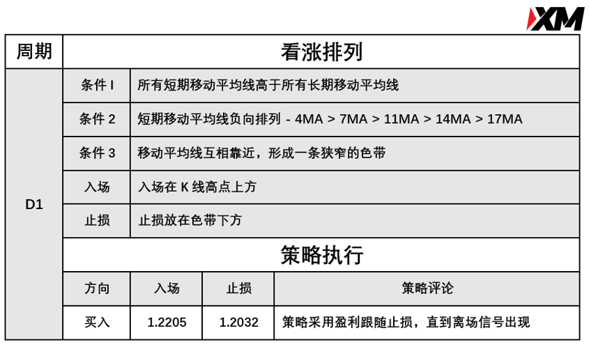 入场价位:1.2205,止损价位:1.2032,策略采取盈利跟踪止损,直到离场信号出现。