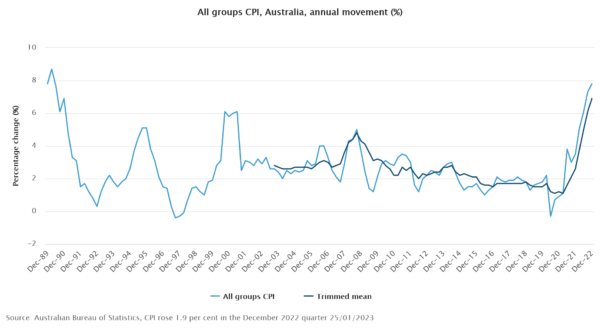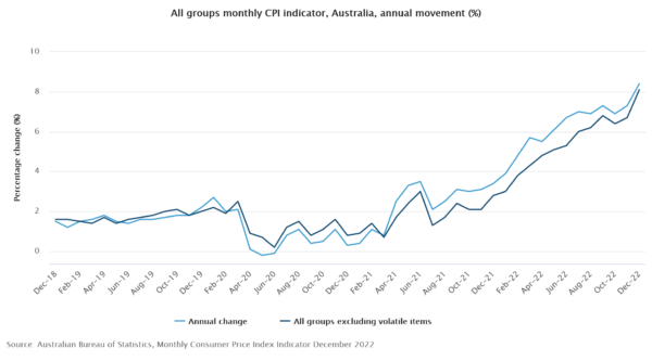澳大利亚统计局周三发布的最新数据显示,2022年第四季度消费者物价指数的涨幅“强于市场预期”(+1.9%),将年度涨幅推高了7.8%。