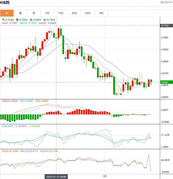 澳元兑美元在欧洲交易于 0.6670,下跌 0.57%。澳大利亚通胀低于预期,引发市场猜测澳大利亚储备银行可能会在 4 月份的会议上暂停。