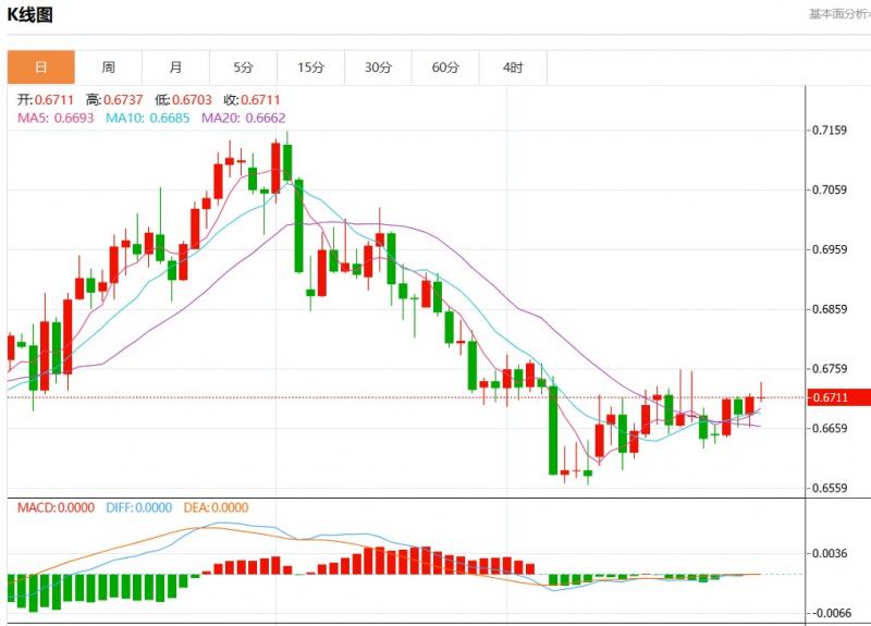 周五盘中,澳元美元报0.6712,跌幅0.01%。