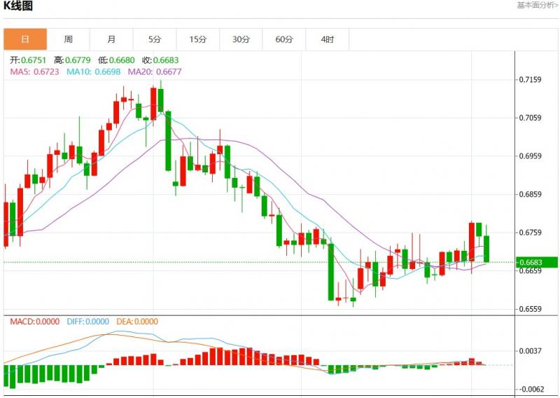 周三盘中,澳元美元报0.6682,跌幅1.01%。