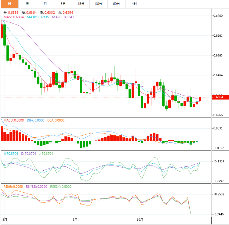 澳元技术面:澳元兑美元表现出更多的看涨倾向,逐渐接近我们等待的目标位0.6400,注意到随机因素明显获得积极势头,支持日内继续上涨的机会,注意到超过上述水平将延长看涨波至0.6475作为下一个积极目标