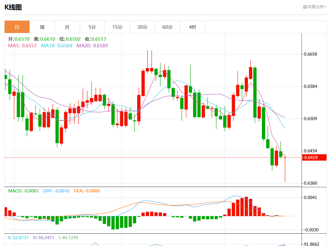 周五盘中,澳元/美元报0.6421,涨幅0.01%。