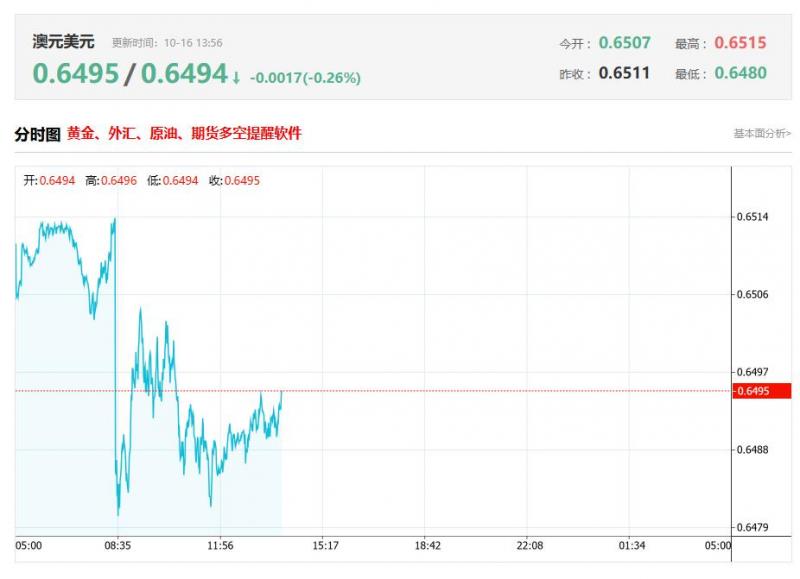 澳元兑美元今日汇率最高0.6495 ,最低0.6494 ,涨跌-0.0017,涨跌幅-0.26% 。