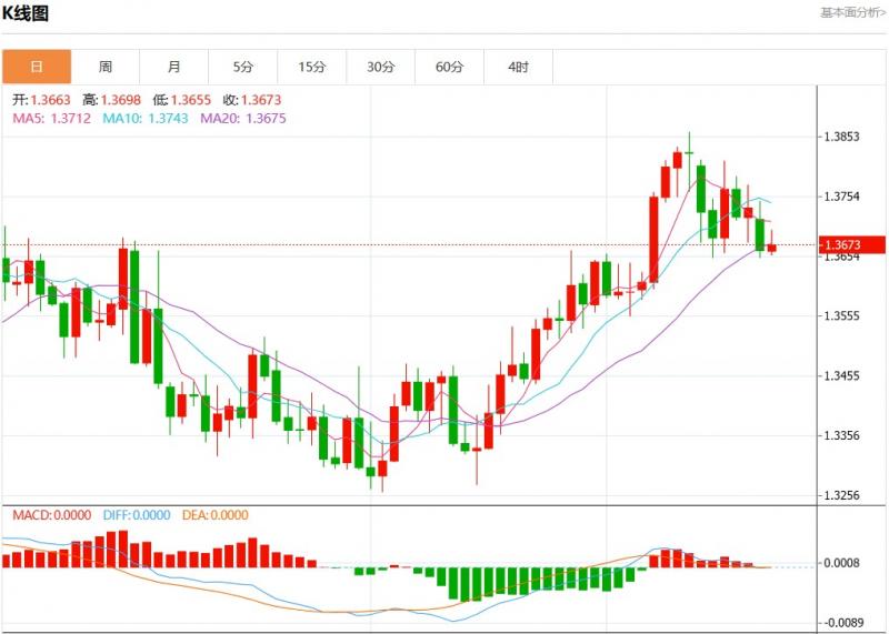 周二盘中,美元加元报1.3671,涨幅0.07%。