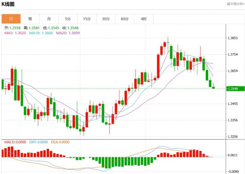 周四盘中,美元加元报1.3549,跌幅0.07%。