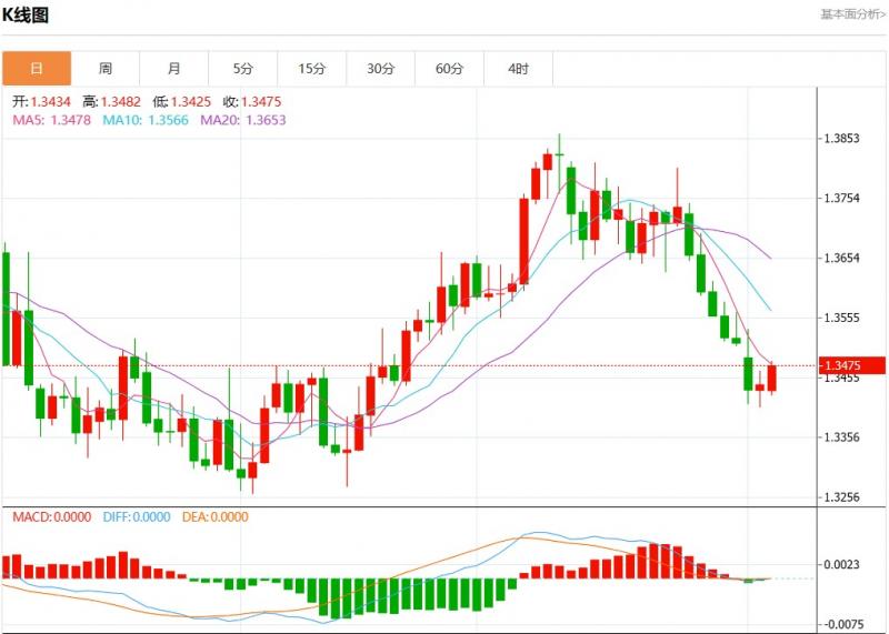 周三盘中,美元加元报1.3474,涨幅0.23%。