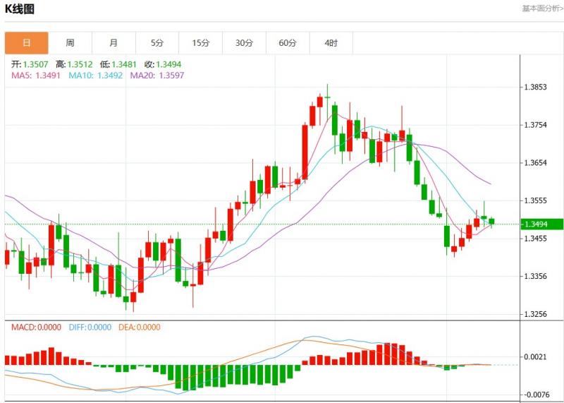 周二盘中,美元加元报1.3494,跌幅0.11%。