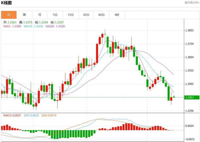 周一盘中,美元加元报1.3357,涨幅0.00%。