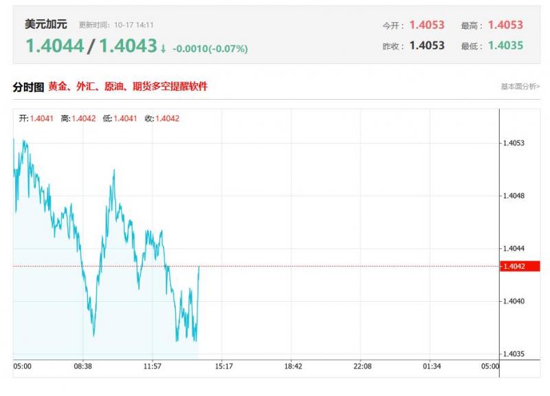 美元兑加元今日汇率最高1.4044 ,最低1.4043 ,涨跌-0.0010 ,涨跌幅-0.07% 。